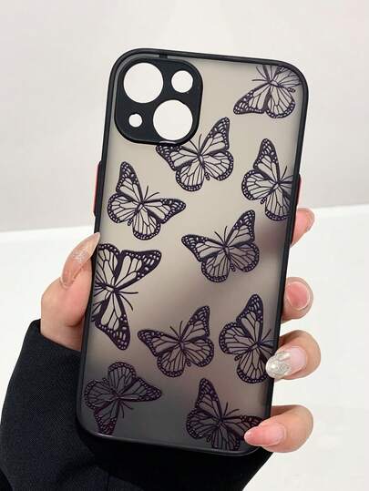1pc Black Butterfly Design Skin Touch Anti-Fall Phone Case Compatible With IPhone - Multicolor - View 1