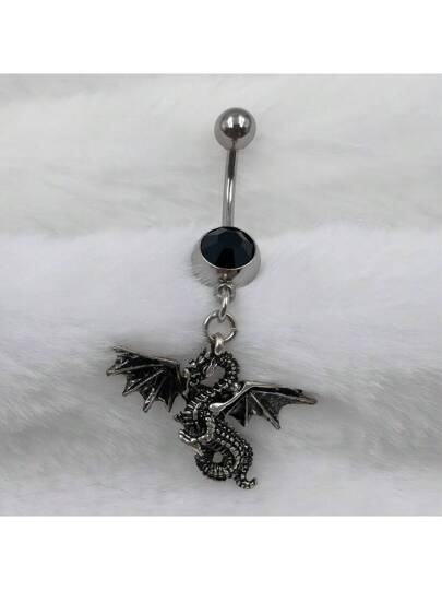 1pc Black-plated Belly Button Ring With Flying Dragon Pendant - Black - View 1