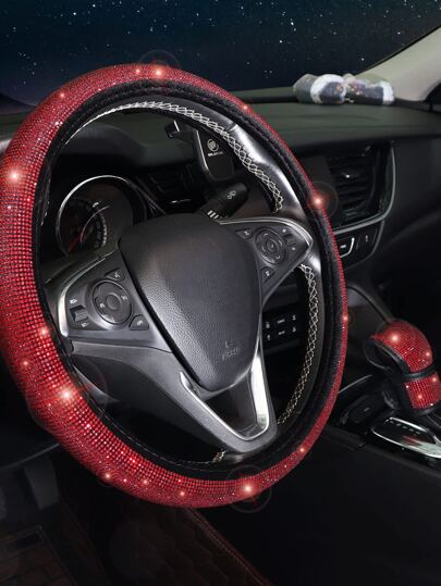 1pc Bling Bling Red Diamond Steering Wheel Cover For Car Interior, Without Inner Ring - Red - View 1