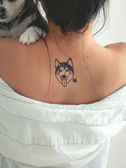1pc Blue Animal Dog Head & Word Pattern Herbal Semi-permanent Non-reflective Tattoo Sticker For Wrists Or Other Small Body Parts - Blue - View 6