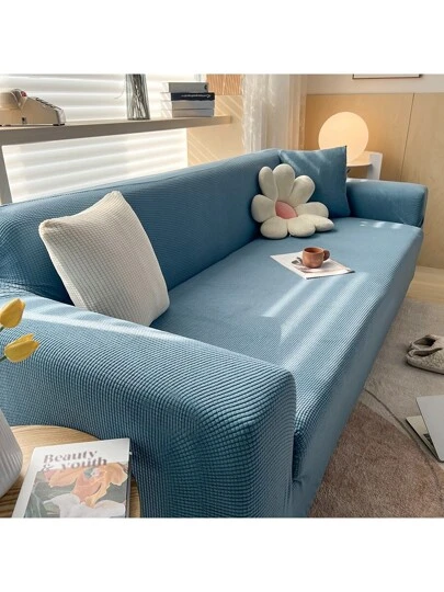 1pc Blue Sofa Slipcover, Minimalist Polyester Stretchy Sofa Cover For Home - Blue - View 1