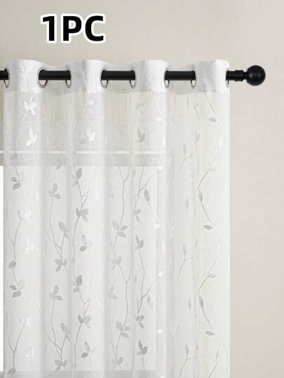 1pc Bohemian Style, Semi-Sheer Lightweight Polyester Curtain, Embroidered Leaf Design Curtain Panel, Suitable For Living Room, Bedroom, Study, Dining Room, Home Decor, Top Eyelets For Easy Installation - White - View 1