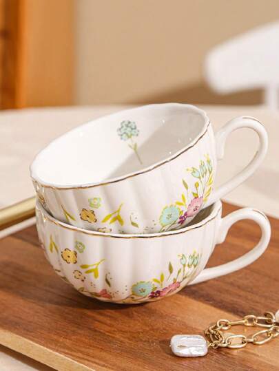 1pc Bone China Coffee Mug With Vintage Golden Edge Ceramic Tea Cup Coffee Cup - White - View 1