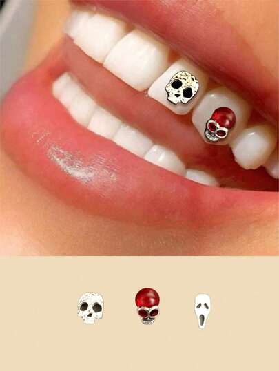 1pc Boxed Halloween Metal Skull Cool And Handsome Tooth Accessories (Box Random) - Multicolor - View 1