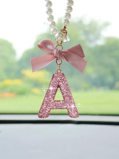 1pc Car Interior Pendant Pink Bow With Diamond Letters Car Rearview Mirror Decoration Car Interior Pendant - one-size - View 1