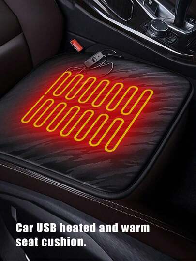 1pc Car USB Heated Seat Cushion - Black - View 1