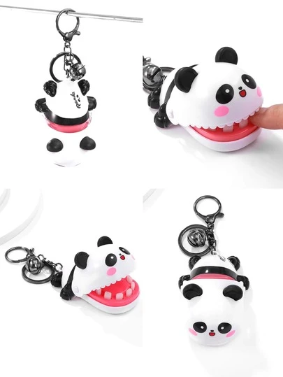 1pc Cartoon Bear Brain Design Pendant Keychain For Men - Black and White - View 8