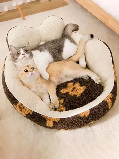 1pc Cartoon Bear Print Pet Bed - Brown - View 1