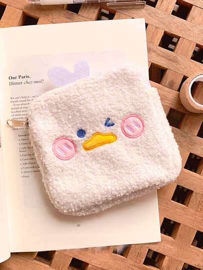 1pc Cartoon Design Sanitary Napkin Storage Bag, Cute Sanitary Napkin Storage Pouch For Outdoor - White - View 1