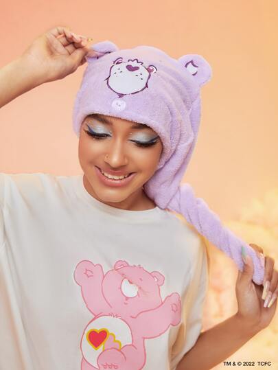 SHEIN X Care Bears 1pc Cartoon Hair Towel, Soft And Absorbent, For Home Bathroom - Purple - View 1