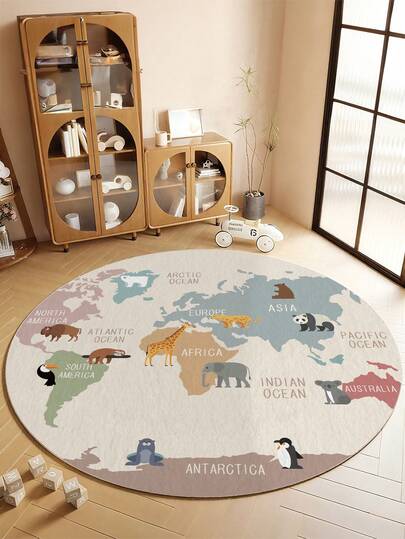 1pc Cartoon Style Round Plush Carpet, Anti-Slip Thick Washable Rug Suitable For Living Room, Bedroom - Multicolor - View 1