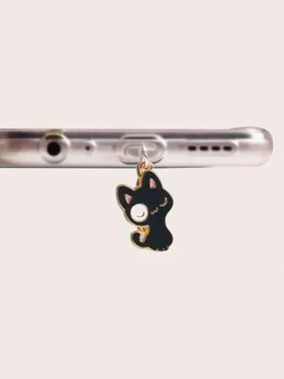 1pc Cat Decor Zinc Alloy Phone Dust Plug - Black - View 1