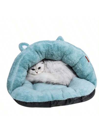 1pc Cat/Dog Bed, Semi-Enclosed Pet Bed For Small Cats/Dogs, Warm For Winter Use, Slip-Resistant & Moisture-Proof Bottom, Multiple Colors Available - Multicolor - View 1