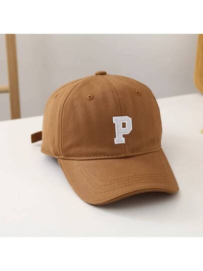 1pc Children's Sun Hat With 'p' Letter Embroidery, Suitable For Outdoor Activities Like Shopping, Spring, Summer And Autumn - Coffee Brown - View 1