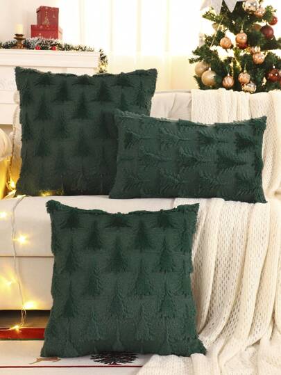 1pc Christmas Tree Embroidered Quilted Plush Cushion Cover, Christmas Decor,Fall Decor,Autumn Decor,Room Decor - Dark Green - View 3