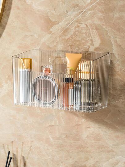 1pc Clear Bathroom Storage Rack, Plastic Self Adhesive Wall Storage Holder For Bathroom - Clear - View 1