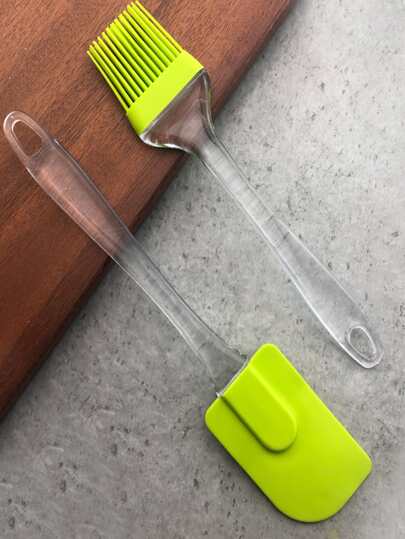 1pc Clear Cream Spatula & 1pc Pastry Brush - Green - View 1