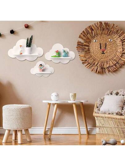 1pc Cloud-Shaped Wall Mounted Storage Rack, Creative Wooden Nordic Style Decor For Kids Room - White - View 1