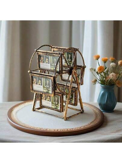 1pc Creative DIY Ferris Wheel Photo Frame, Assemble Required, 4 Inch Photo Frame, Birthday Gift, Photo Display Stand For Home, Room, Office Decor, Valentine's Day, New Year, Easter, Random Paper Pattern (Frame Material: ABS Plastic) Gifts Graduation - Bronze - View 1