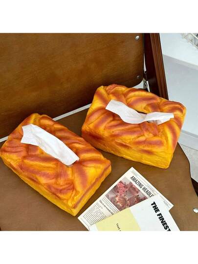 1pc Creative Simulation Bread Design Plastic Tissue Box Holder, Square Shaped, Novelty Tissue Dispenser For Home, Car, Living Room, And Dining Room Decor - Multicolor - View 1
