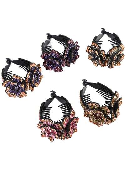 1pc Crystal Flower Hair Claw Clip For Ponytail (Random Crystal Color) - Champagne - View 5