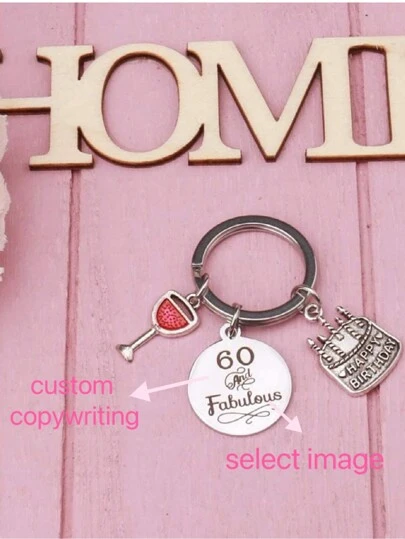 1pc Customized Personalized Birthday Cake Wine Glass Pendant Red Wine Glass Keychain Custom Exclusive Birthday Gift Double-Sided Custom Text Rationalization Available One-Piece Customization Multiple-Piece Customization Family Exclusive Customization Charm Handbag Pendant Suitable For Wife/Girlfriend/Besties/Classmate/Friend, Birthday Memorial Gift, Christmas Gift, Party Favors - Multicolor - View 1