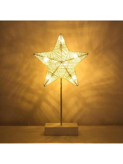 1pc Decorative Table Lamp, Battery Powered  Star Shape  Desk Lamp, Winding Thread Warm LED Star Light Home Bedroom Romantic Bedside Desktop Nightstand Decoration - White - View 1