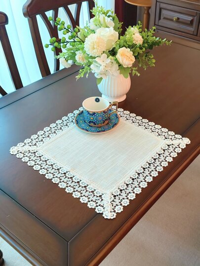 100% Polyester Delicate Water-Soluble Lace Trim Kitchen Dining Table Mat, Table Runner, Placemat, Home Decor, Family Gathering, Holiday Decoration, Party & Wedding Decorations, Placemats 1pc - White - View 1