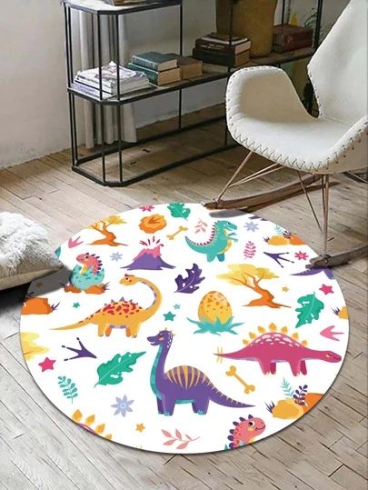 1pc Dinosaur Pattern Round Floor Rug, Modern Fabric Floor Mat For Household - Multicolor - View 1