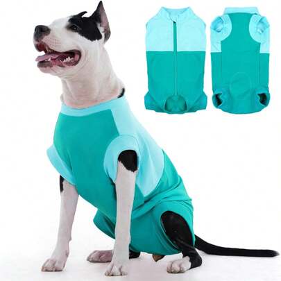 1pc Dog Surgery Suit With Back Zipper, Comfortable For Recovery, Unisex For Male And Female Dogs - Blue - View 1