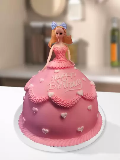 1pc Half-Body Doll & Plastic Ribbon Hair Accessory For Cake Decoration, Baking Decoration, Party Supplies, Birthday Gifts - Baby Blue - View 1