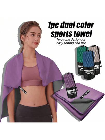 1pc Dual-Color Golf Towel, Super Soft Microfiber Quick Dry Sports Towel, Durable For Outdoor Camping Hiking, Absorbent - Multicolor - View 1