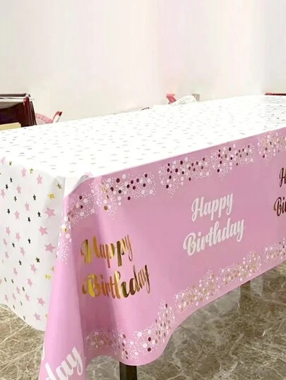 1pc Dual-Color Happy Birthday English Letter Print Tablecloth, Oil And Water Resistant, Suitable For Children's Birthday Party - Pink - View 1