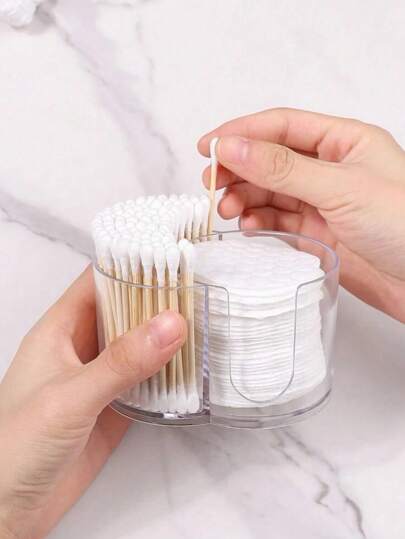 1pc Dual Compartment Round Makeup Remover Pad & Clean Swab Holder -  Bathroom Desktop Organizer Storage Container, Canisters Bathroom Accessories Back To School - Multicolor - View 1