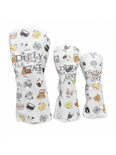 1pc Dully Cat Design Golf Club Head Cover, Suitable For Driver, Fairway Wood And Hybrid Clubs, Golf Accessories - White - View 1
