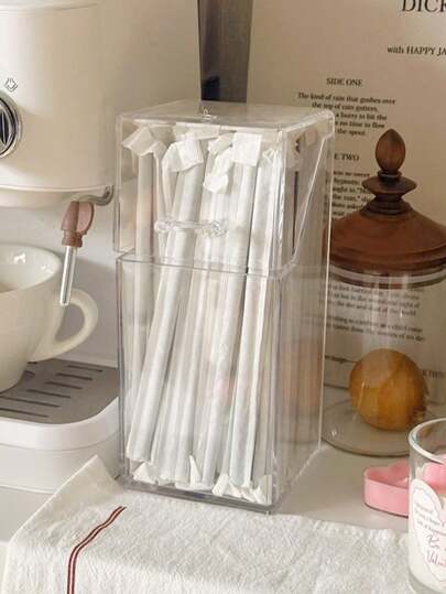 1pc,Dustproof Straw Storage Box,Acrylic Disposable Straw Box,Capsule Coffee Milk Tea Bag Storage Box,Cutlery Knife Fork Chopsticks Spoon Storage Box With Lid Dustproof - Clear - View 1