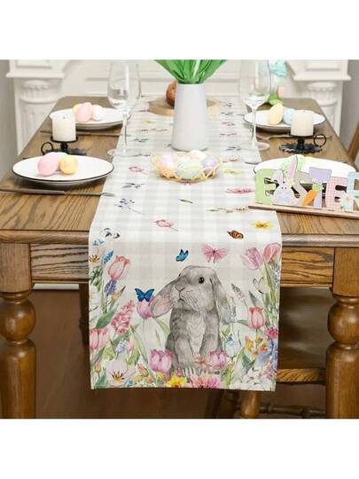 1pc Easter Rabbit Floral Printed Polyester Tablecloth, For Home, Kitchen, Outdoor, Holiday Party, Dining Room, Event Decoration - ZQ-047 - View 1