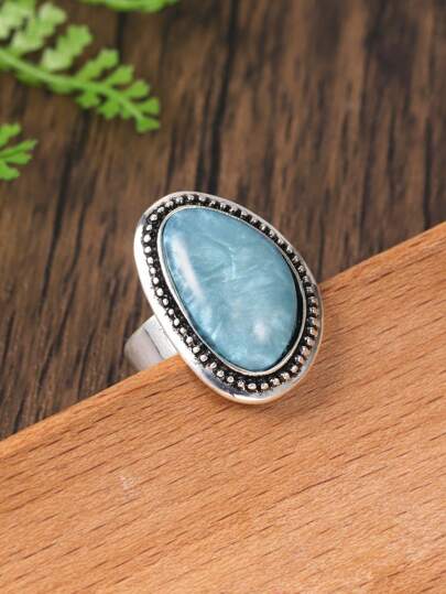 1pc Elastic Adjustable Geometric Colorful Enamel Ring For Ladies/Girls, Elegant And Creative Accessory For Parties And Dates, Gift - Blue - View 1