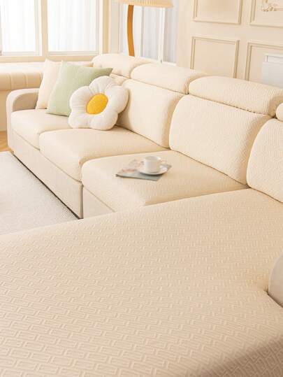 1pc Elastic Stretch L Shape Corner Sofa Cover With Cushion Cover And Armrest Cover Dust-proof Protective Slipcover - Beige - View 1