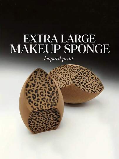 1pc Extra Large Leopard Print Makeup Sponge, Wet & Dry Use, Ultra Soft Facial Makeup Tool, Soft Oval Facial Sponge, Triple-Sided Design For Convenient Multi-Angle Application, Suitable For Foundation And Concealer, For Beginners And Professionals - Multicolor - View 1