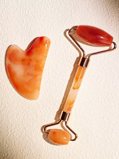 SHEIN BASIC LIVING Face Roller and Gua Sha Tool Set-Terracotta - Red - View 1