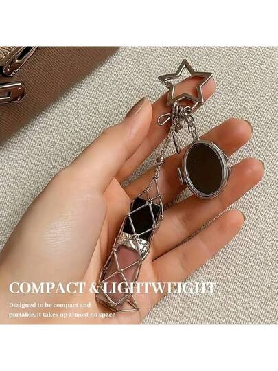1pc Fashion Keychain With Lipstick Holder & Makeup Mirror, Lipstick Case Keychain, Wallet/Bag Accessory, Portable Travel Essential, Mini Cosmetic Storage Box, Stylish Design, Metal Keyring, Mini Storage Box, Valentine's Day Gift - Multicolor - View 6