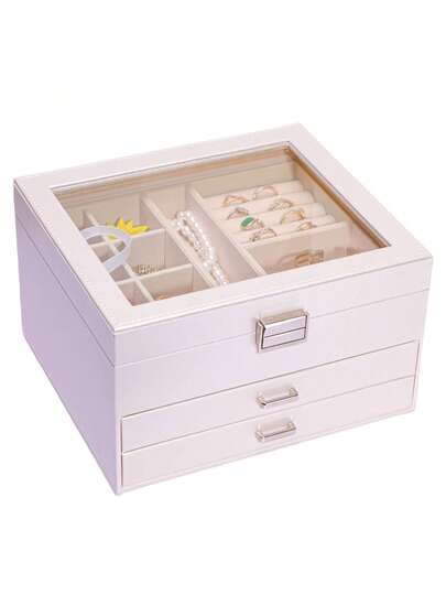 1pc Fashion Solid Color Jewelry Box With Display Window, Suitable For Necklaces, Rings, Bracelets, Earrings And Other Jewelry Storage, An Essential Gift For Women And Christmas Present - Multicolor - View 1