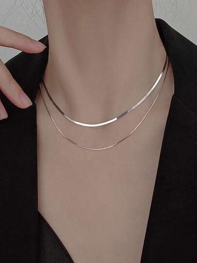 1pc Fashion Stainless Steel Layered Necklace For Women For Daily Life - Silver - View 1