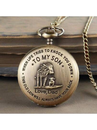 1pc Fashionable Bronze Lion Pendant Quartz Flip Cover Pocket Watch, Large Size - Bronze - View 1