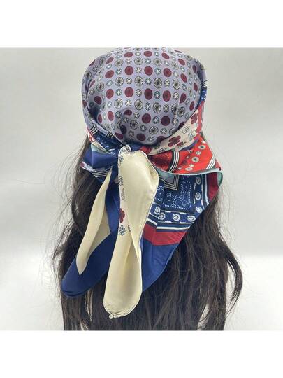 1pc Fashionable Geometric Pattern Headscarf For Women, Multi-Way Styling, Spring/Summer - Blue - View 1