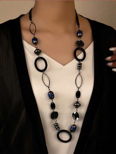 1pc Fashionable Retro Black Long Necklace, Suitable For Daily Wear - Black - View 1