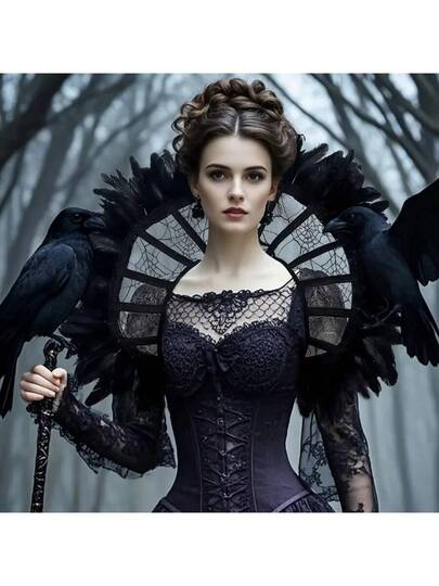 1pc Feather Net Mesh Frame Lace Cape Collar, Halloween & Carnival Stage Costume Prop - Multicolor - View 9