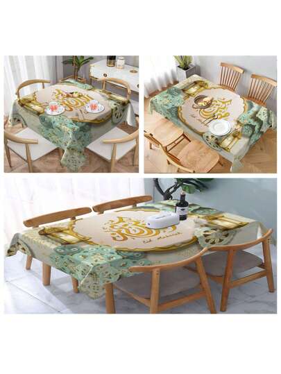1pc Festival Tablecloth, Square/Rectangular, Water Resistant, Spill Proof, Washable, Polyester Fabric, Ideal For Party, Festival, Coffee, Picnic, Banquet Decor - Multicolor - View 1