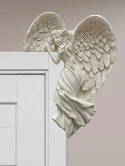 Door Frame Angel Decor Statue Ornament, Distressed Angel Sculpture, Door Corner Angel Decor Resin Wall Sculpture Craft, Vintage Angel Sculpture Ornament For Door Decoration - Multicolor - View 1